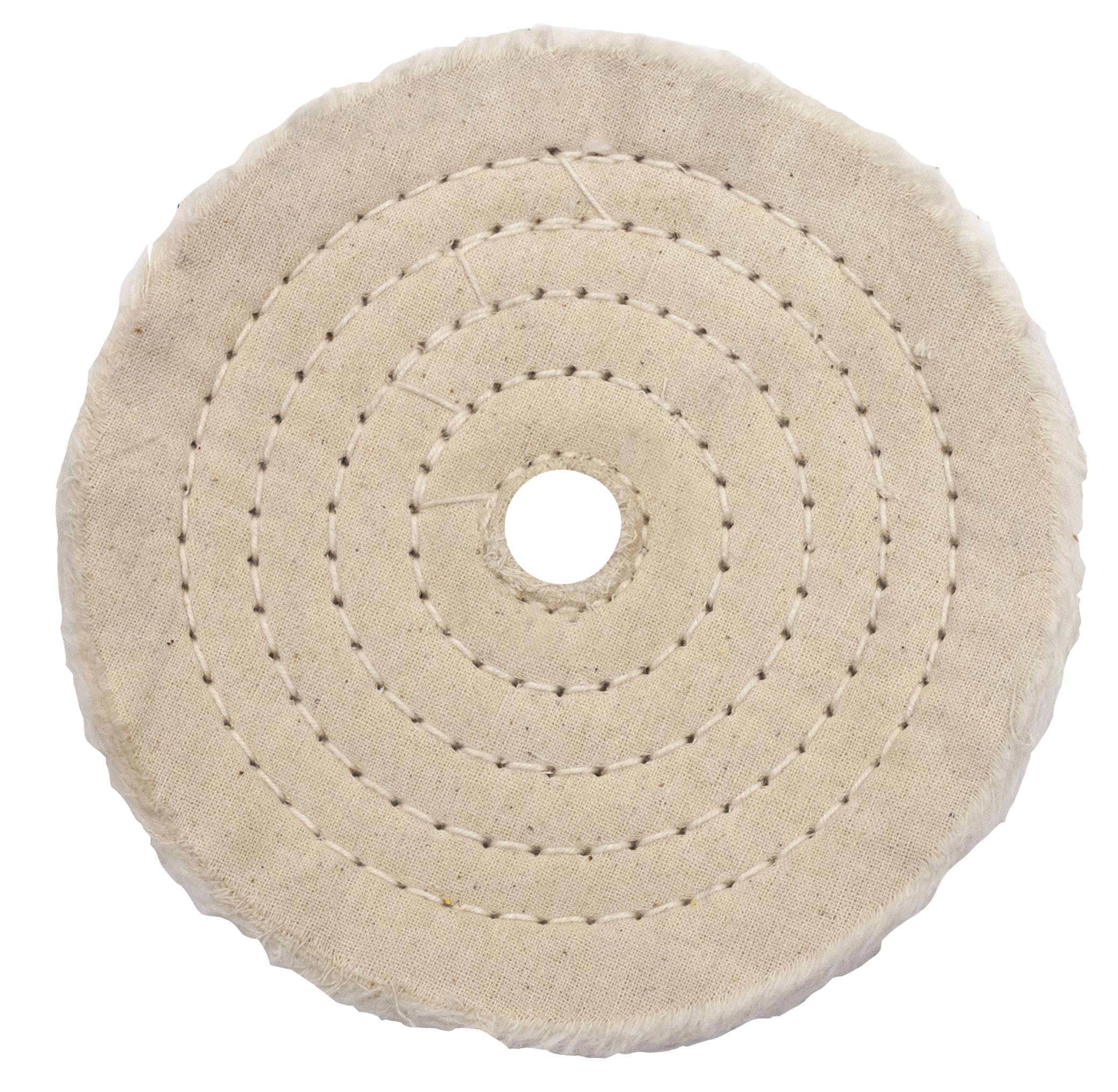 8″ x 1/2″ Buffing Wheel with 1″ Arbor Hole, white cotton, spiral sewn