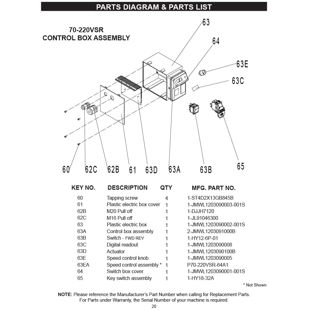 | P70-220VSR-63 | Electric Box - Mfg# 1-JMWL1203090002-001S California Proposition 65 Warning |